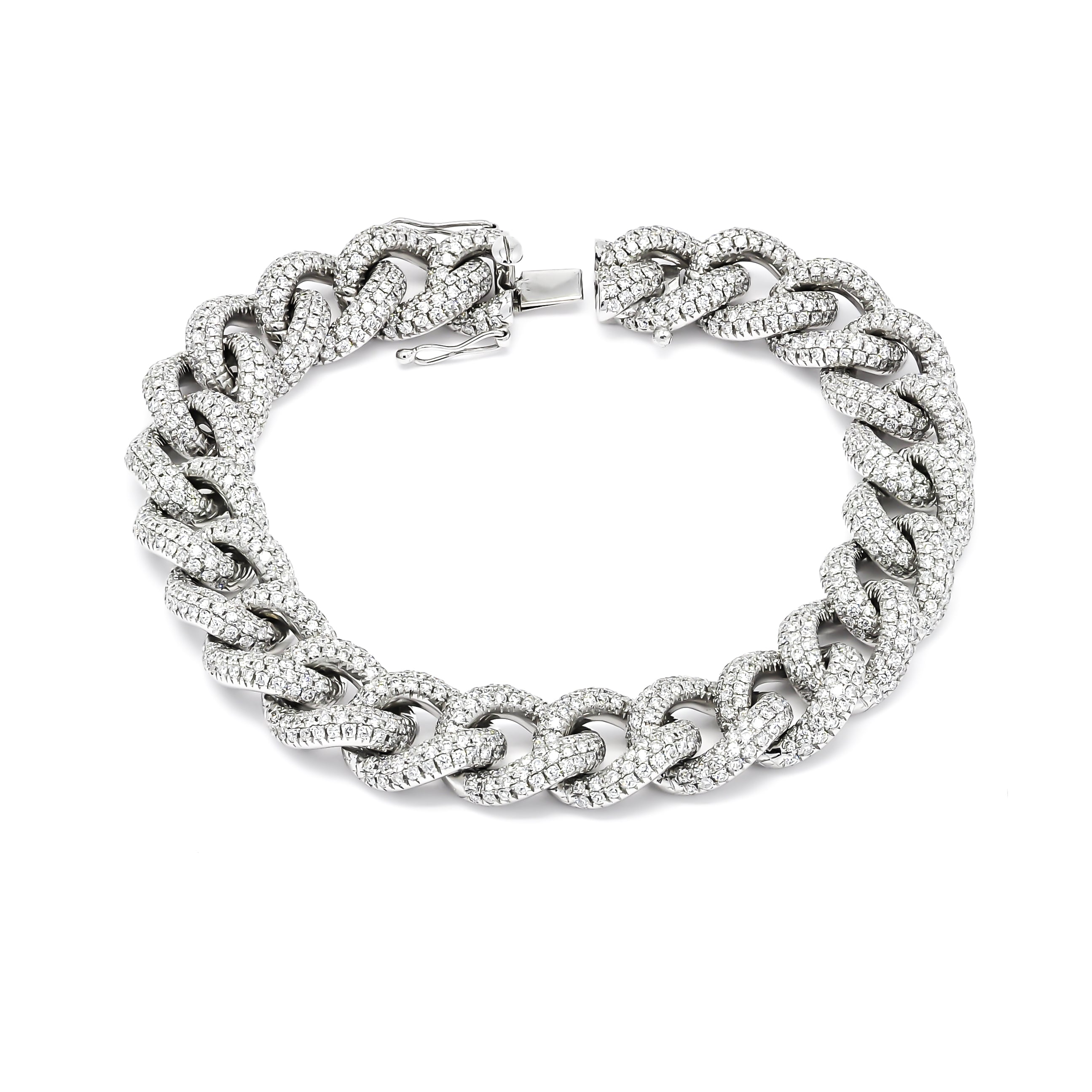 18k WHITE GOLD LUXURY PAVÉ CUBAN CHAIN BRACELET