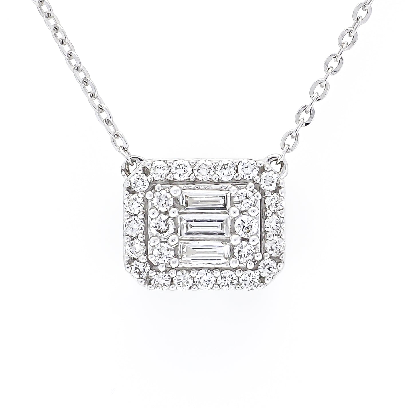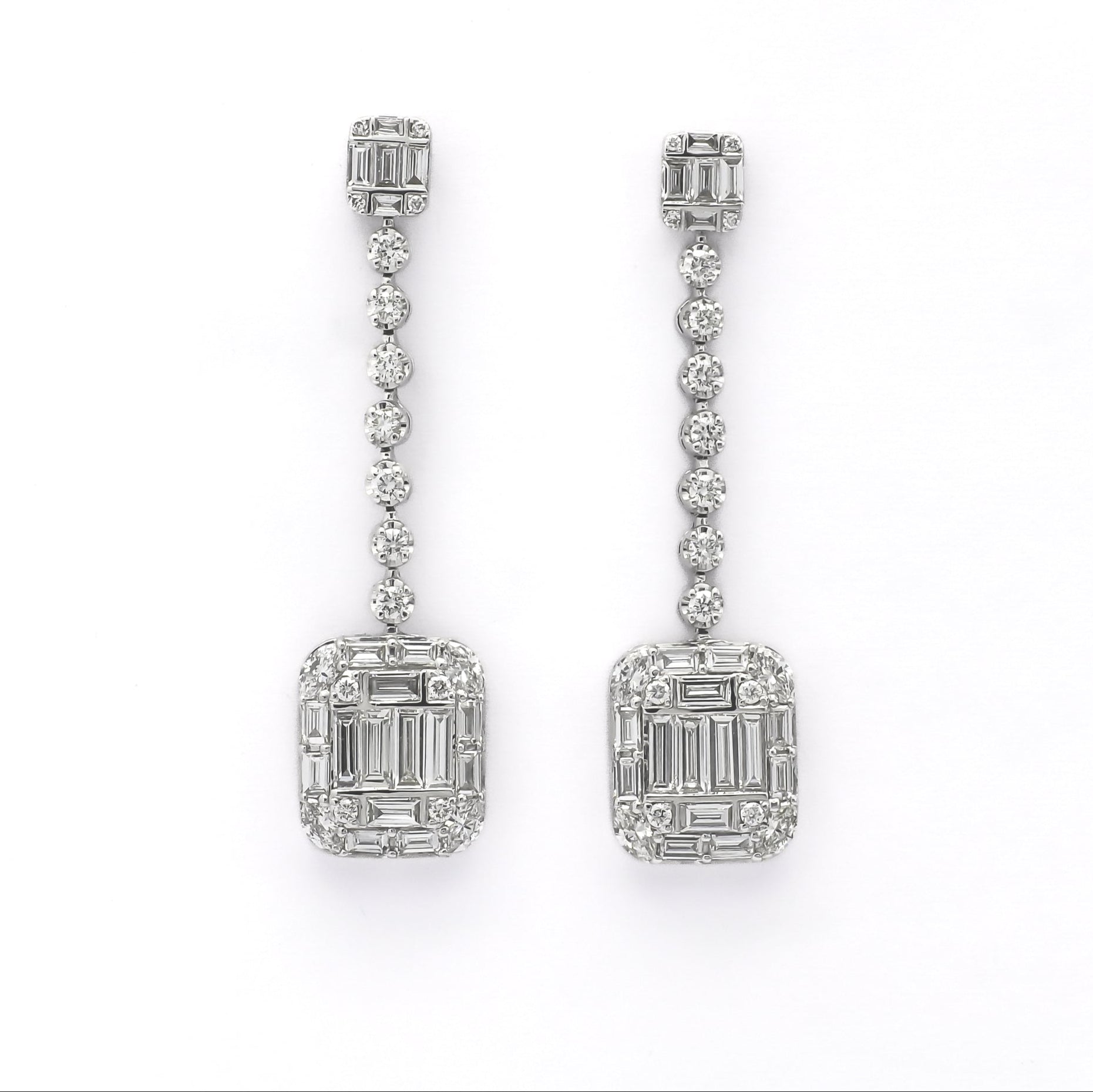 18k WHITE GOLD RECTANGLE BAGUETTE INSIDE/OUT HOOP EARRINGS