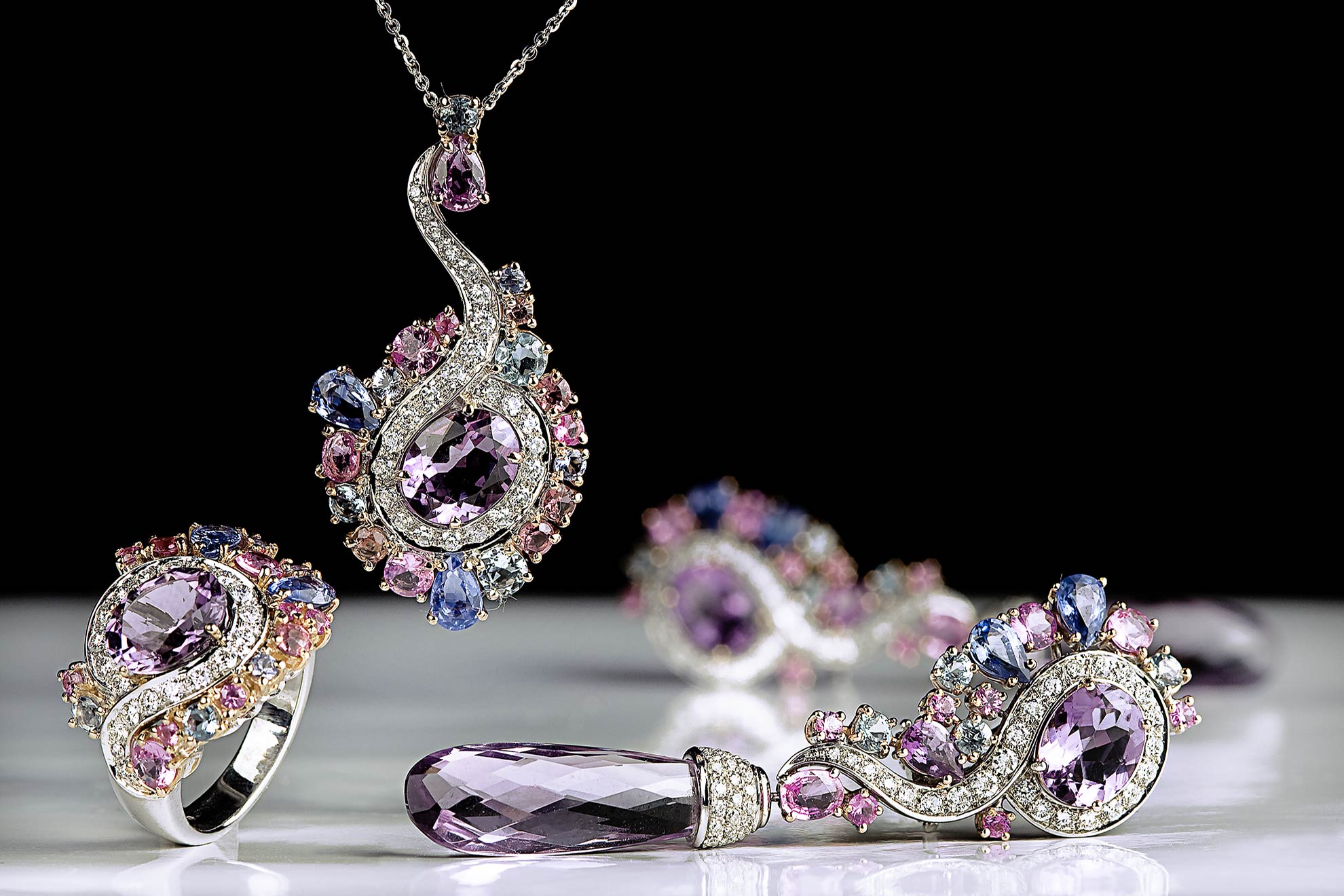 This collection is inspired by the very first touch of spring: the scent of blooming gardens, the play of light on dewy mornings, and the gentle warmth of nature coming back to life. Amethysts, aquamarines, and blue and pink sapphires are masterfully combined with white and rose gold to form a vibrant, almost floral composition - each curve reflecting movement, rebirth, and feminine strength.